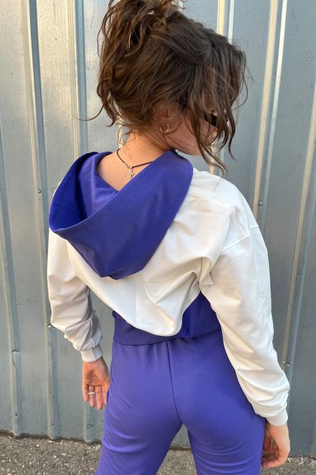 Жіночий спортивний костюм від Agonwear zip violet - стильний спортивний костюм для жінок у двокольоровій гамі. Верх виконаний у поєднанні тканин кольору молока та фіолетового з капюшоном, що додає образу комфорт і затишок. Застібка-блискавка робить його зручним для швидкого одягання та знімання. Спортивні штани у світло-фіолетовому кольорі з еластичними манжетами забезпечують ідеальну посадку та свободу рухів.Широка розмірна сітка для PLUS SIZE включно Чудово поєднується з кросівками для створення модного та спортивного образу.. Ідеально підходить для активного відпочинку та повсякденного носіння.
